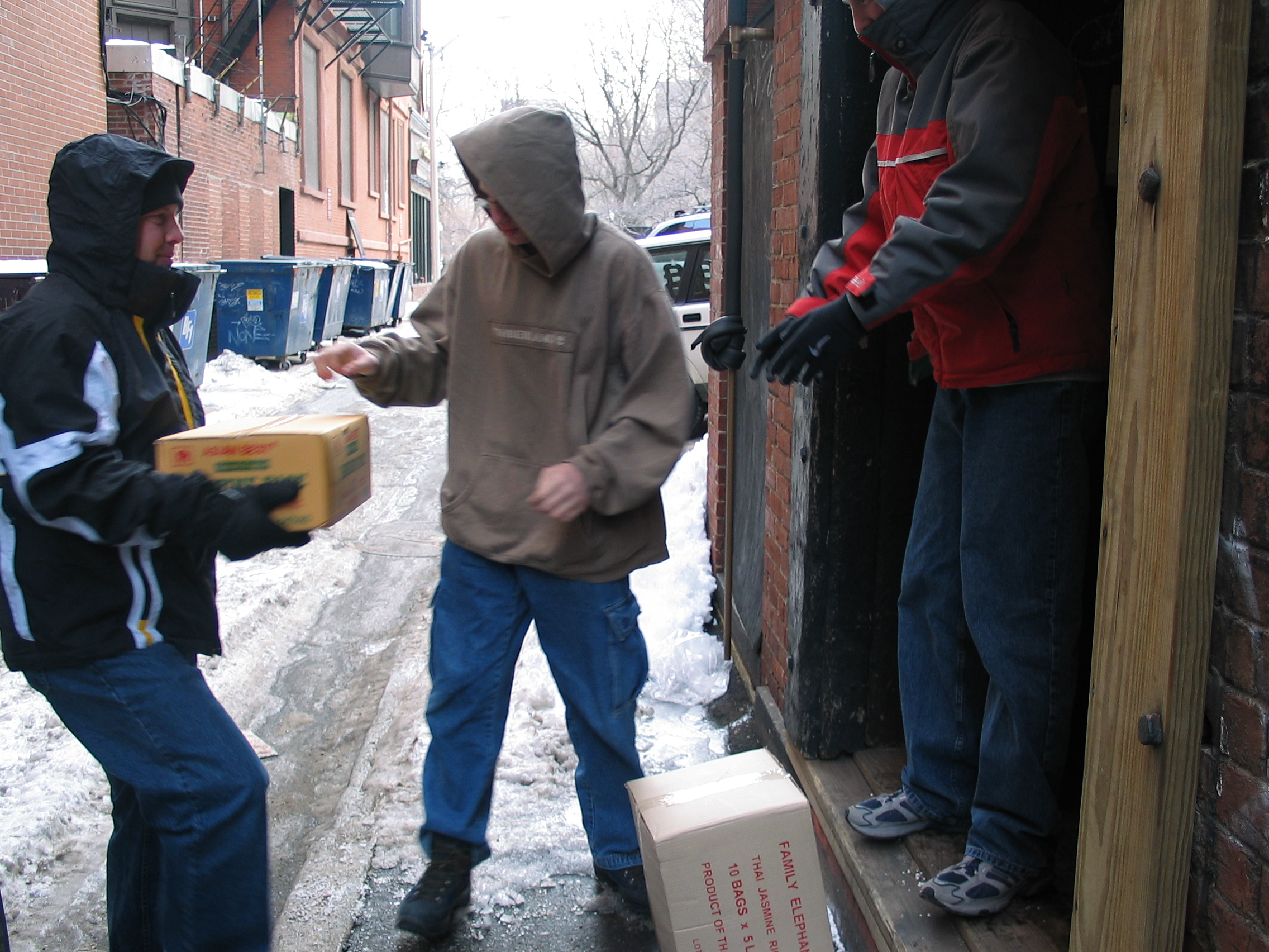 On Saturday, 15 February 2003, we delivered it to the Arlington Street Church. The food pantry has been using their space during the winter months, as there is enough space to let the customers come inside while they are waiting.